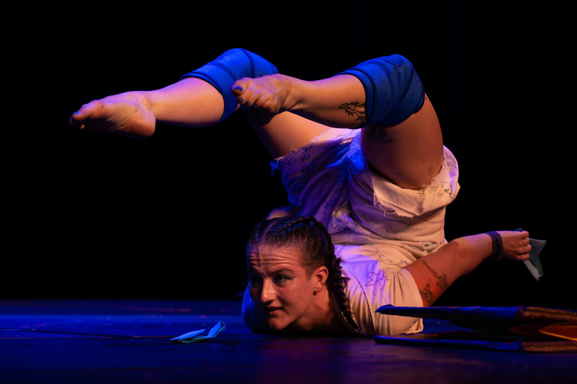 Specialising in contortion Krystal uses their extreme flexibility to push the boundaries of what a body can do. They mix this skill with their other circus disciplines; tumbling, acrobatics and aerials. An enigma by all accounts they create work that reflects their complex lived experience as a non-binary neurodiverse artist. Forcing audiences to question what is possible and sit in the uncomfortable.